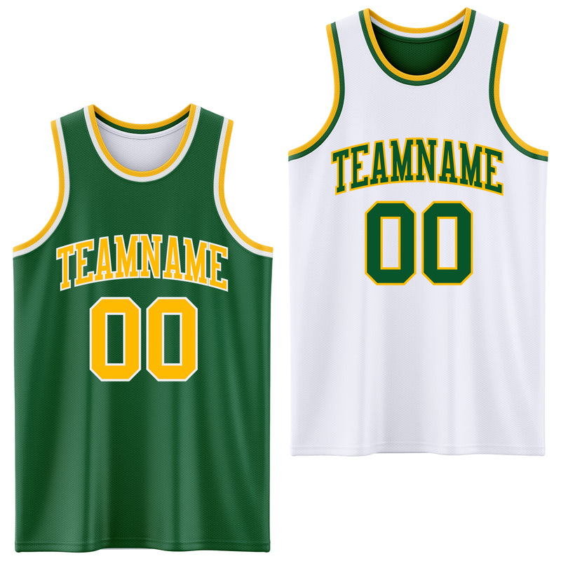 Custom Reversible Kelly Green Gold-White Double Side Sublimation Basketball Suit Jersey