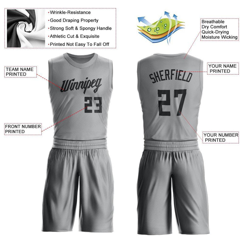 Custom Gray Black Round Neck Suit Basketball Jersey