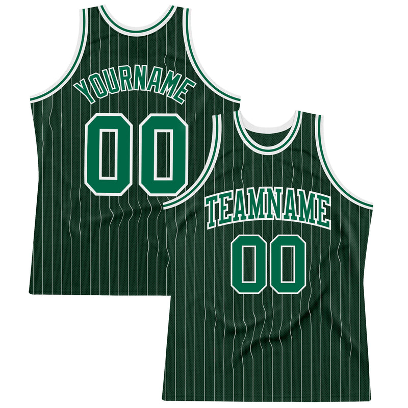 Custom Hunter Green White Pinstripe Kelly Green Authentic Basketball Jersey
