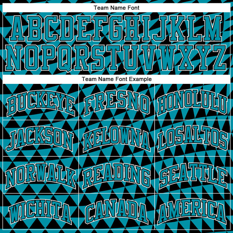 Custom Teal Black-White Triangle Shapes Round Neck Sublimation Basketball Suit Jersey