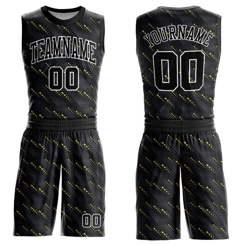 Custom Black Gold-White Round Neck Sublimation Basketball Suit Jersey