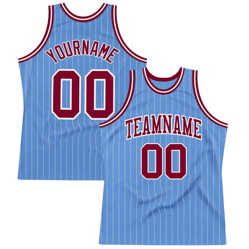 Custom Light Blue White Pinstripe Maroon Authentic Basketball Jersey