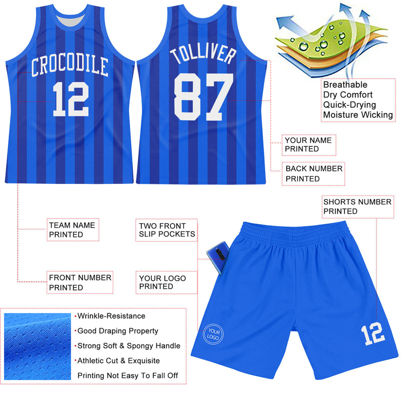 Custom Royal White Line Round Neck Sublimation Basketball Suit Jersey