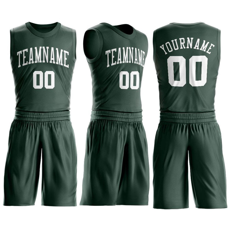 Custom Hunter Green White Round Neck Suit Basketball Jersey
