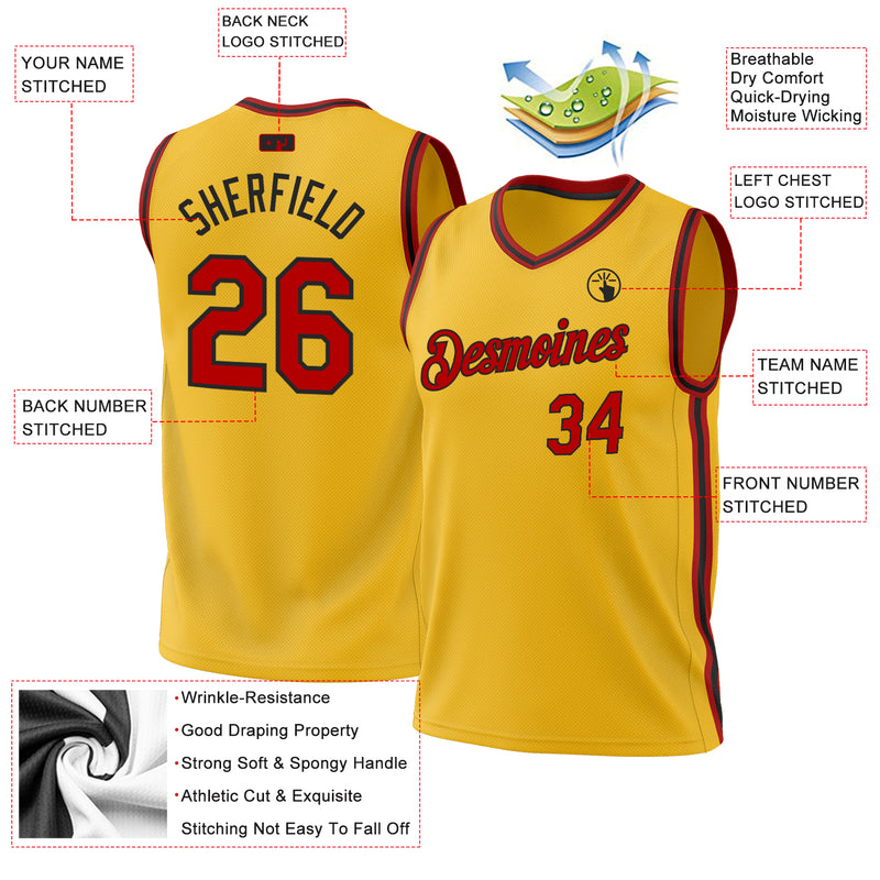 Custom Gold Red-Black Authentic Throwback Basketball Jersey