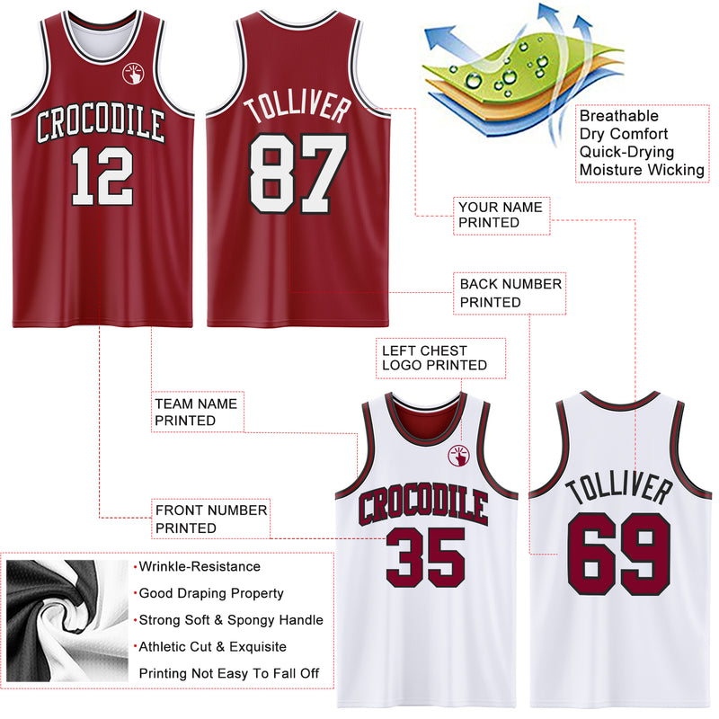 Custom Reversible Maroon White-Black Double Side Sublimation Basketball Suit Jersey