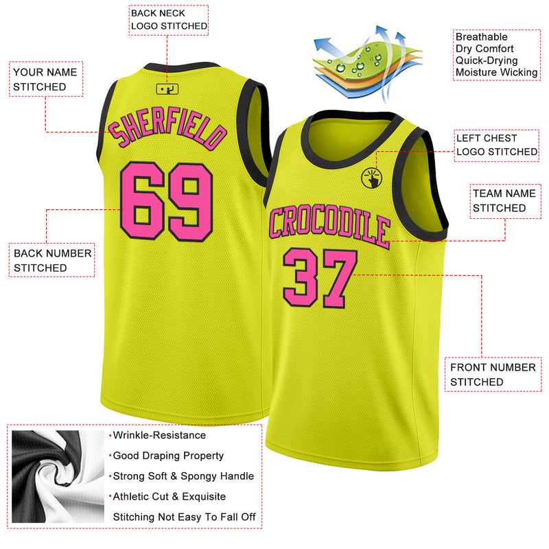 Custom Neon Yellow Pink-Black Authentic Basketball Jersey