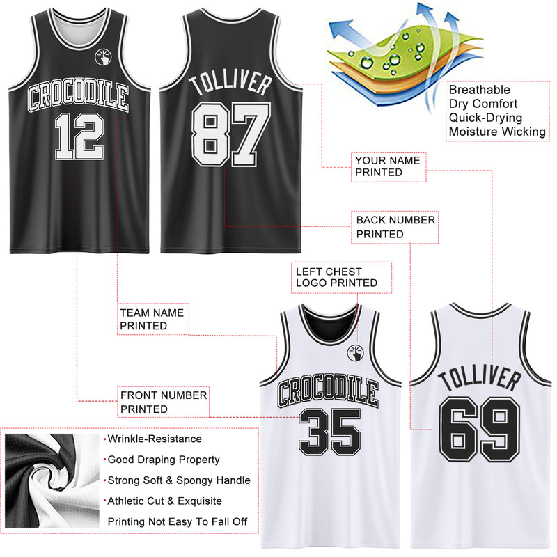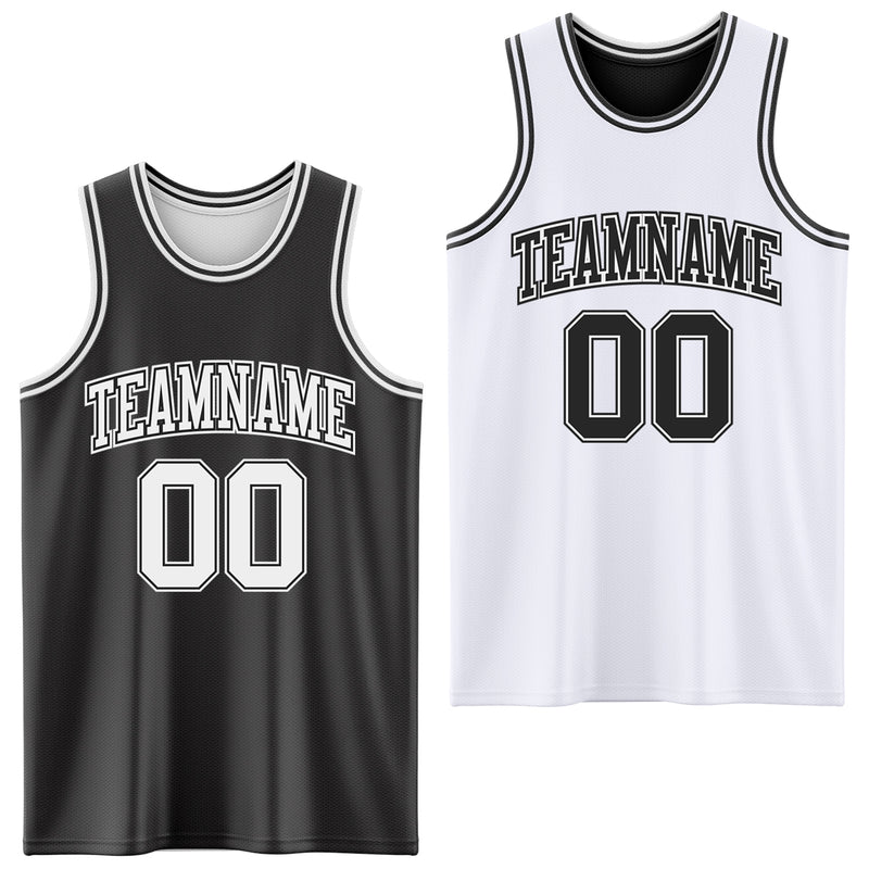 Custom Reversible Black White Double Side Sublimation Basketball Suit Jersey