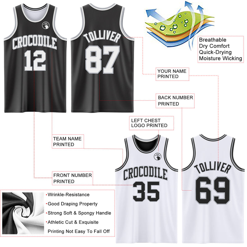 Custom Reversible Black White-Gray Double Side Sublimation Basketball Suit Jersey