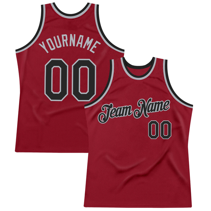Custom Maroon Black-Gray Authentic Throwback Basketball Jersey