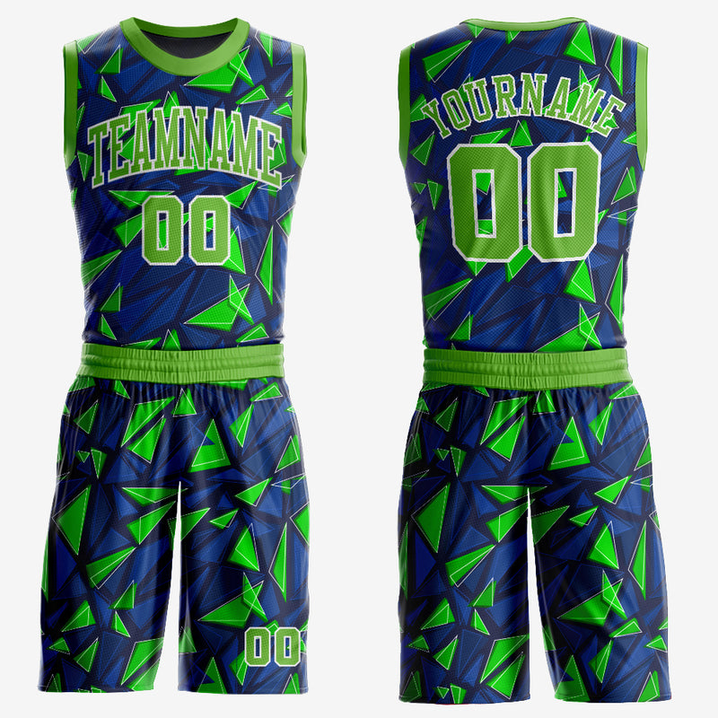 Custom Royal Neon Green-White Round Neck Sublimation Basketball Suit Jersey