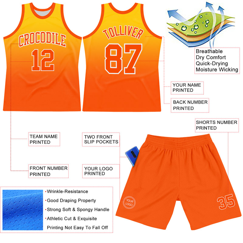 Custom Yellow Orange-White Fade Fashion Round Neck Sublimation Basketball Suit Jersey