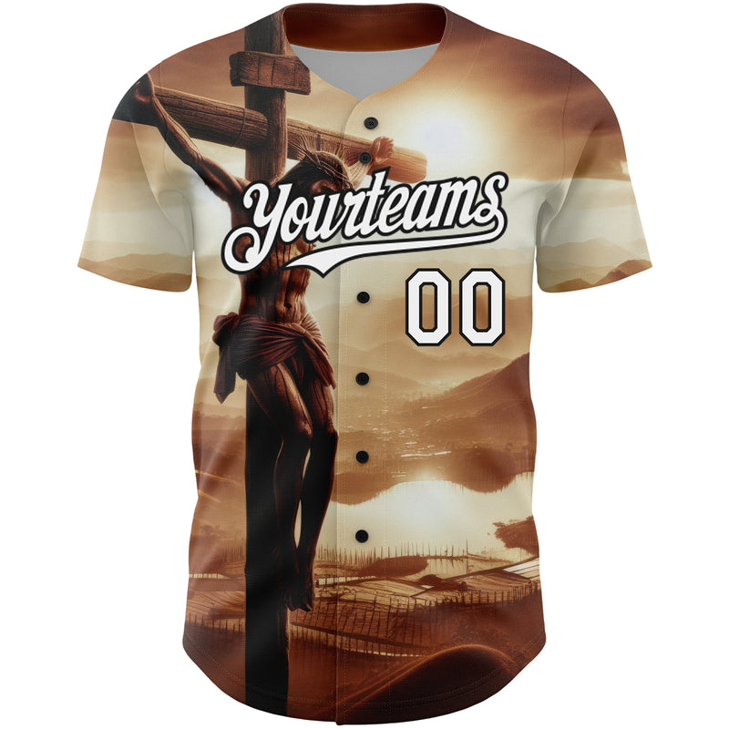Custom Brown White-Black 3D Pattern Design Religion Cross Jesus Christ Good Friday Authentic Baseball Jersey