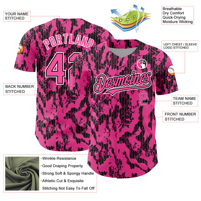 Custom Pink Black-White 3D Pattern Design Abstract Fluid Authentic Baseball Jersey