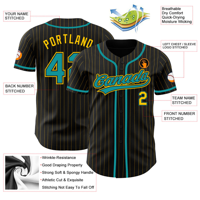 Custom Black Yellow Pinstripe Teal Authentic Baseball Jersey