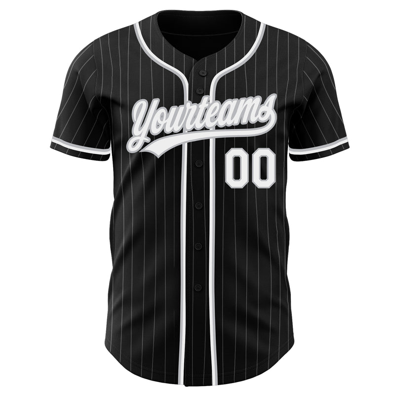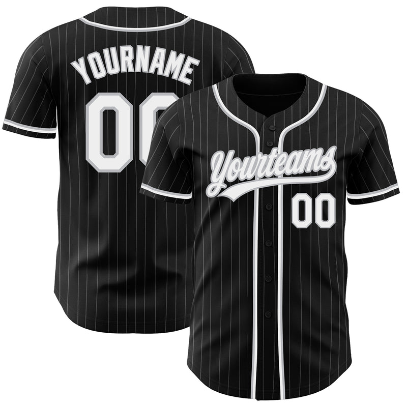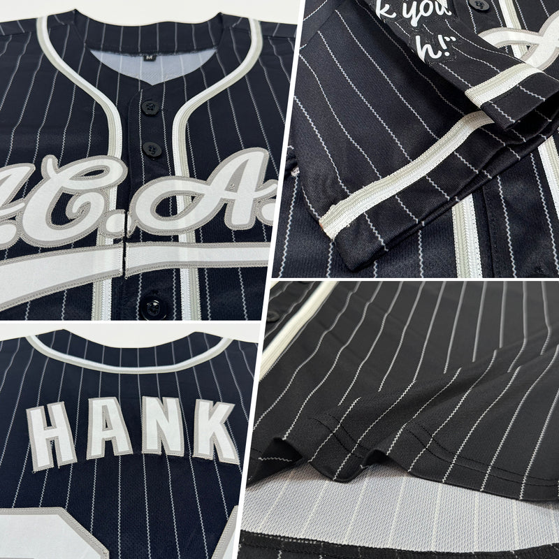 Custom Black Gray Pinstripe White Authentic Baseball Jersey