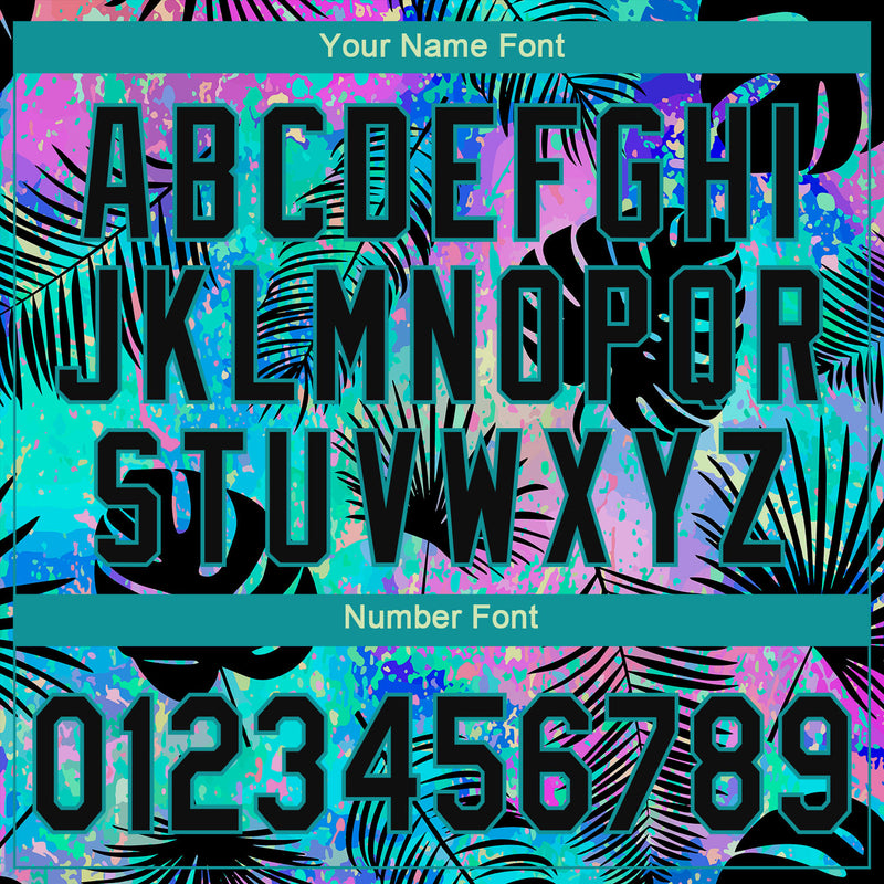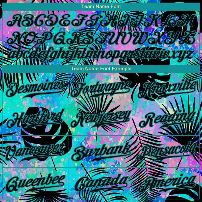 Custom Teal Black 3D Pattern Design Hawaii Palm Leaves Authentic Baseball Jersey