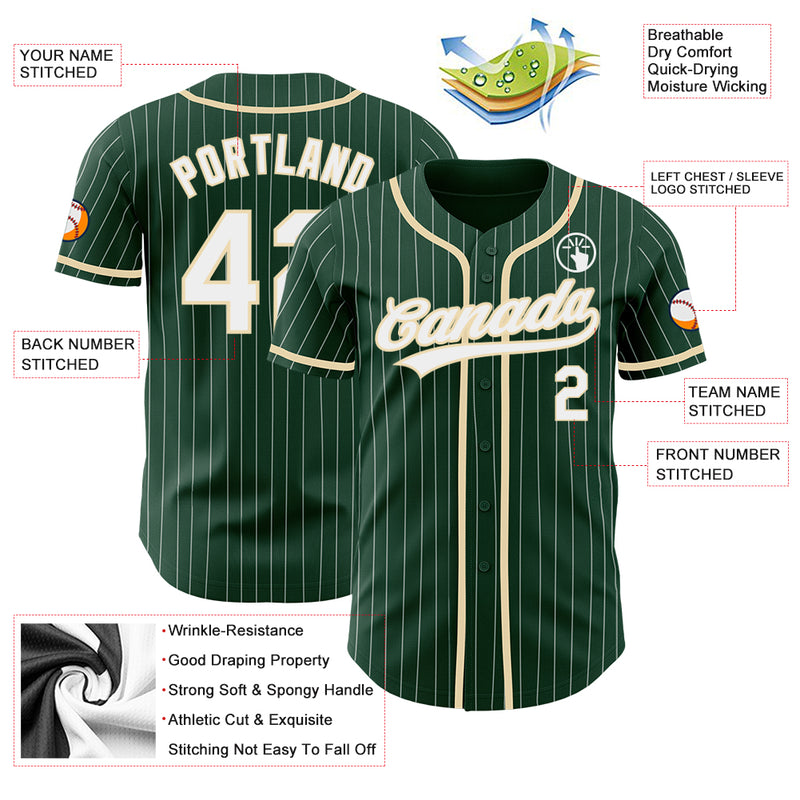 Custom Green White Pinstripe City Cream Authentic Baseball Jersey
