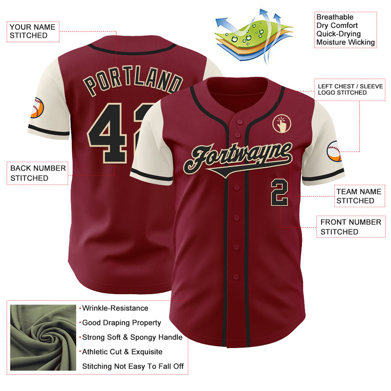 Custom Crimson Black-Cream Authentic Two Tone Baseball Jersey