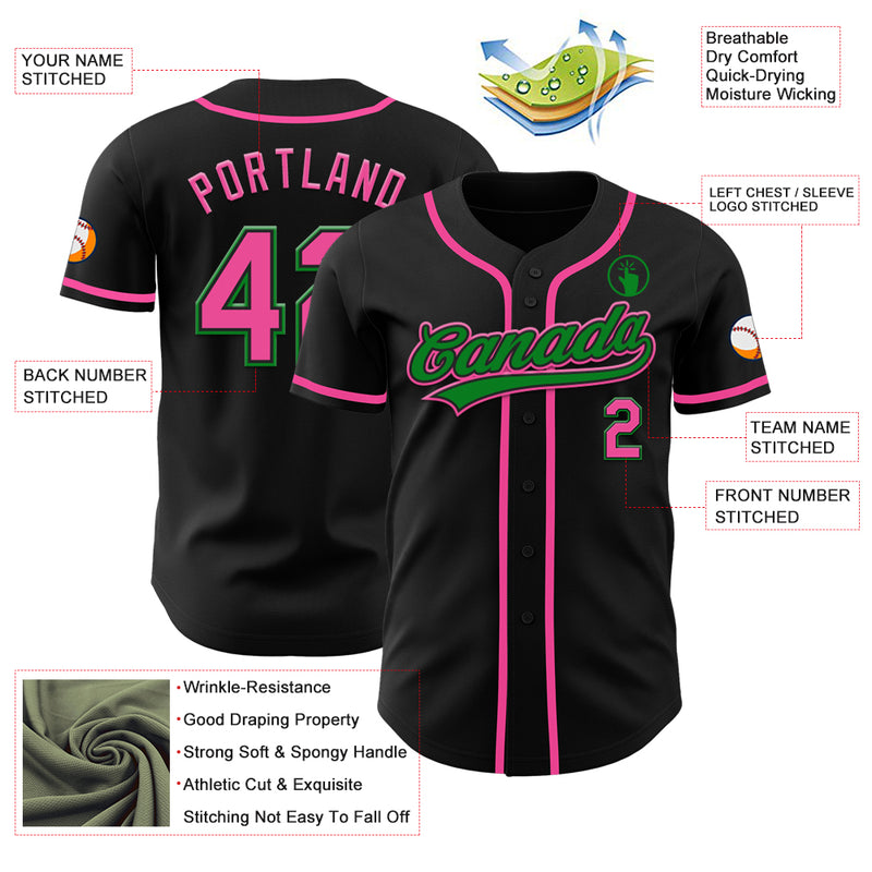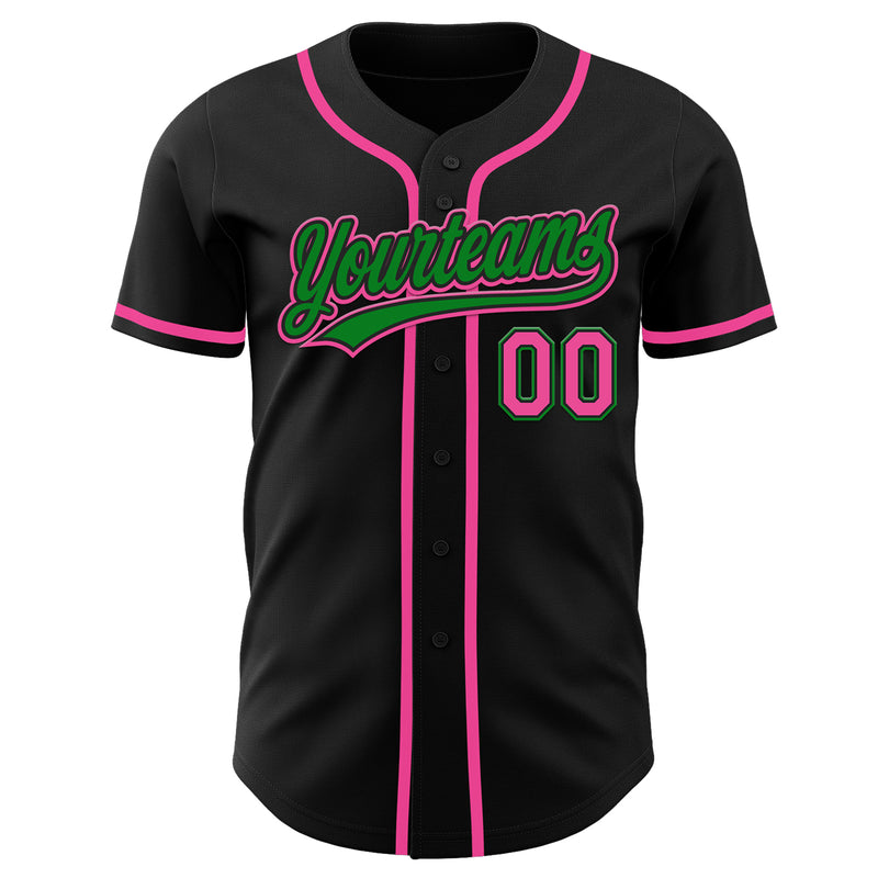 Custom Black Pink-Grass Green Authentic Baseball Jersey