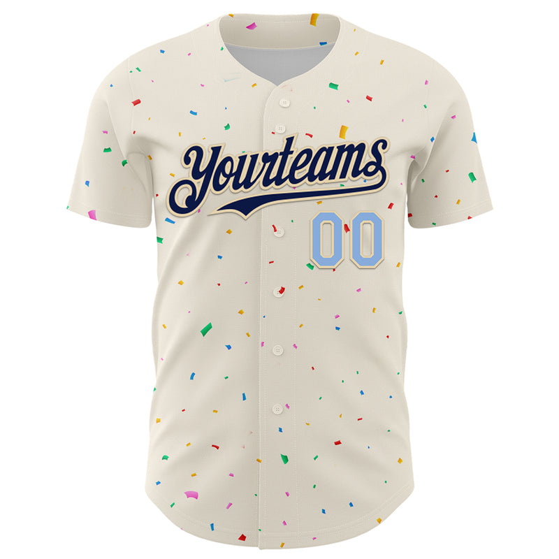 Custom Cream Navy-Light Blue 3D Pattern Design Confetti Authentic Baseball Jersey