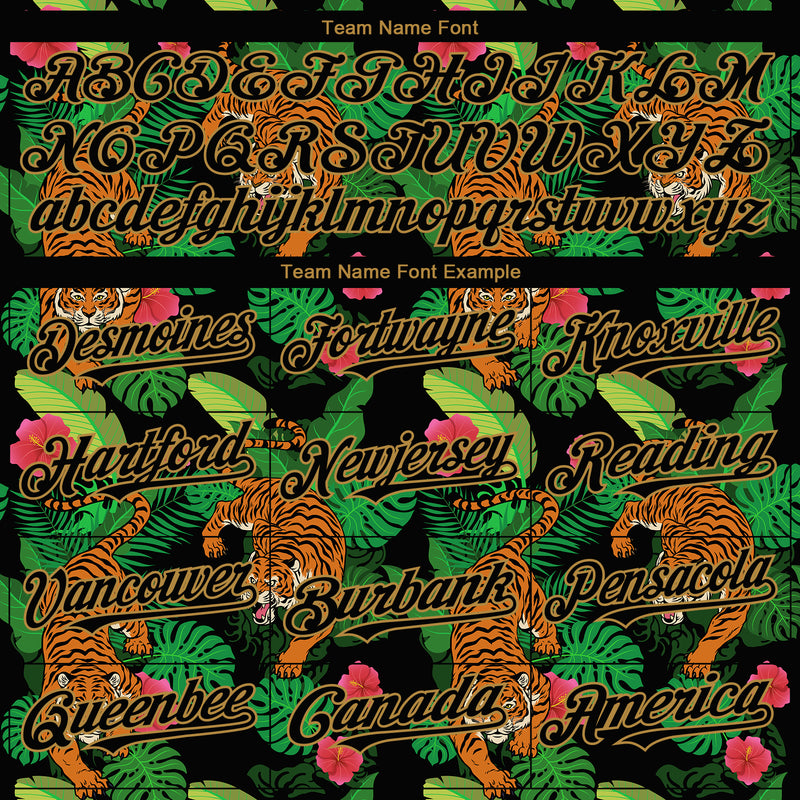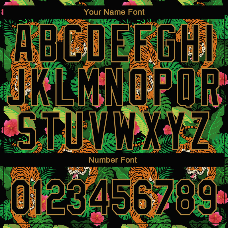 Custom Black Old Gold 3D Pattern Design Hawaii Tropical Tiger Authentic Baseball Jersey