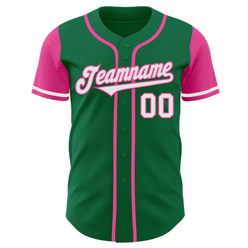 Custom Kelly Green White-Pink Authentic Two Tone Baseball Jersey