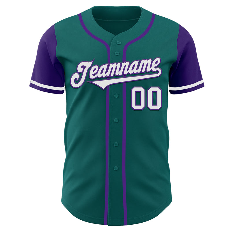 Custom Teal White-Purple Authentic Two Tone Baseball Jersey