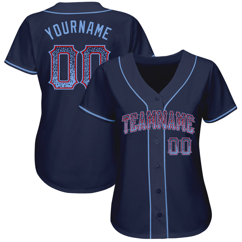 Custom Navy Light Blue-Red Authentic Drift Fashion Baseball Jersey