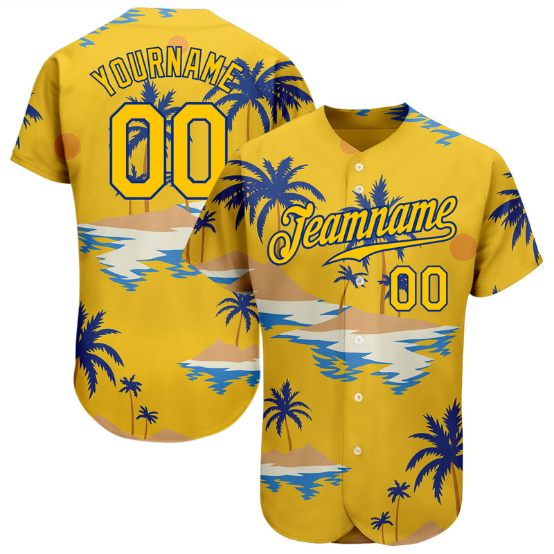 Custom Yellow Royal 3D Pattern Design Sun Beach Hawaii Palm Trees Authentic Baseball Jersey
