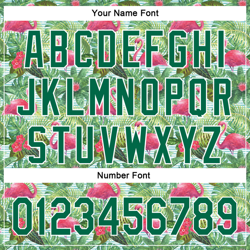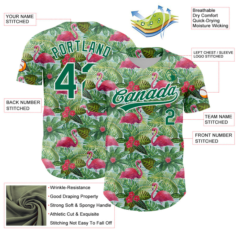 Custom White Kelly Green 3D Pattern Design Animal Flamingo And Hawaii Palm Leaves Authentic Baseball Jersey