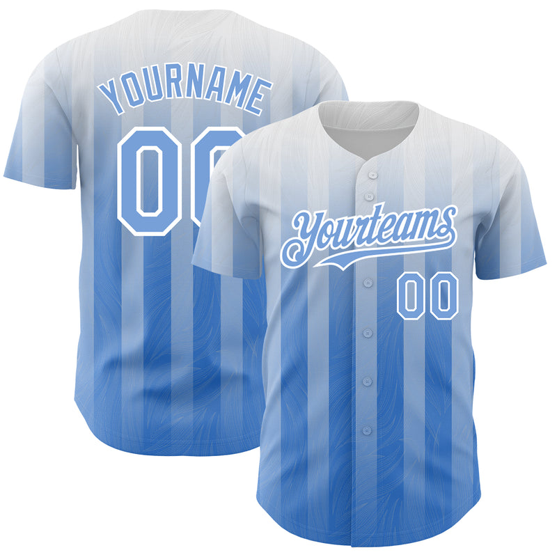 Custom White Light Blue 3D Pattern Design Stripes Authentic Baseball Jersey