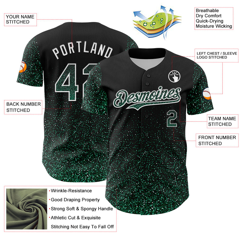 Custom Black Kelly Green-White 3D Pattern Design Abstract Colorful Glittering Dot Authentic Baseball Jersey