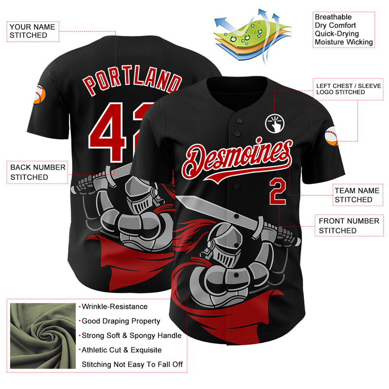 Custom Black Red-White 3D Pattern Design Knight Hero Art Authentic Baseball Jersey