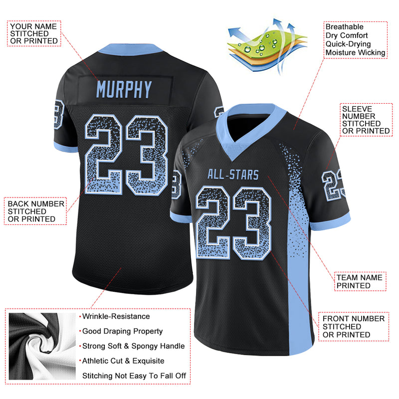 Custom Black Light Blue-White Drift Fashion Football Jersey