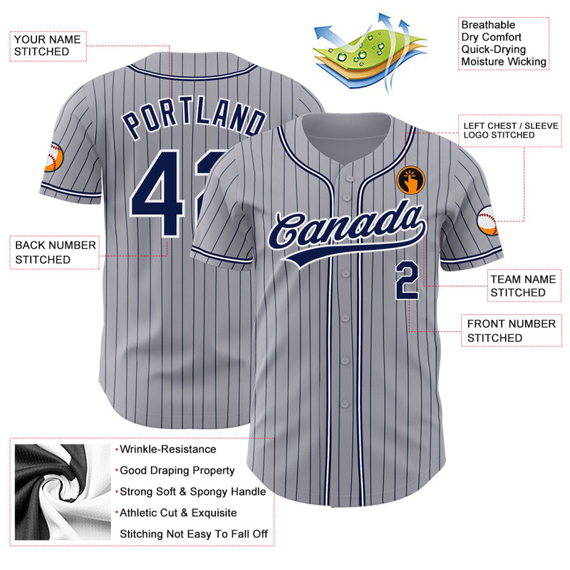 Custom Gray Navy Pinstripe Navy-White Authentic Baseball Jersey