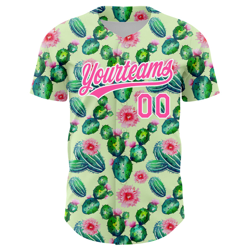 Custom Green Pink-White 3D Pattern Design Cactus Festival Authentic Baseball Jersey
