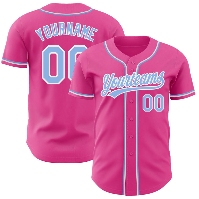 Custom Pink Light Blue-White Authentic Baseball Jersey