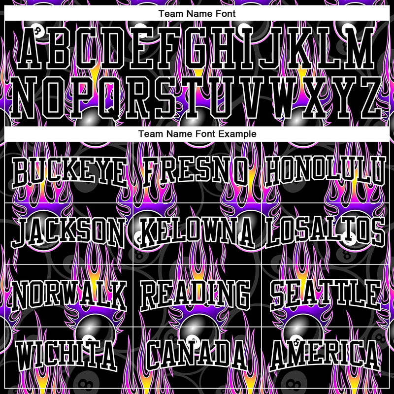 Custom Stitched Black White-Purple 3D Flame Billiard Snooker 8 Ball Sports Pullover Sweatshirt Hoodie