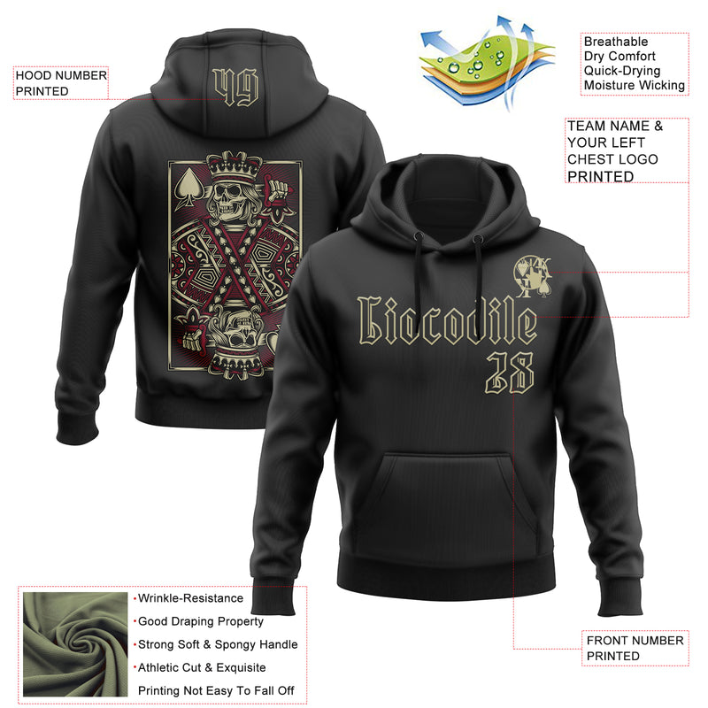 Custom Black Gold 3D Skull Poker Playing Card Sports Pullover Sweatshirt Hoodie