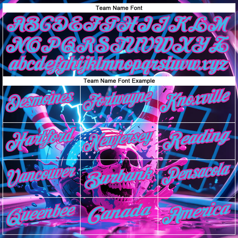 Custom Navy Sky Blue-Deep Pink 3D American Flag Splash Lightning Skull Bowling Performance Polo Shirt