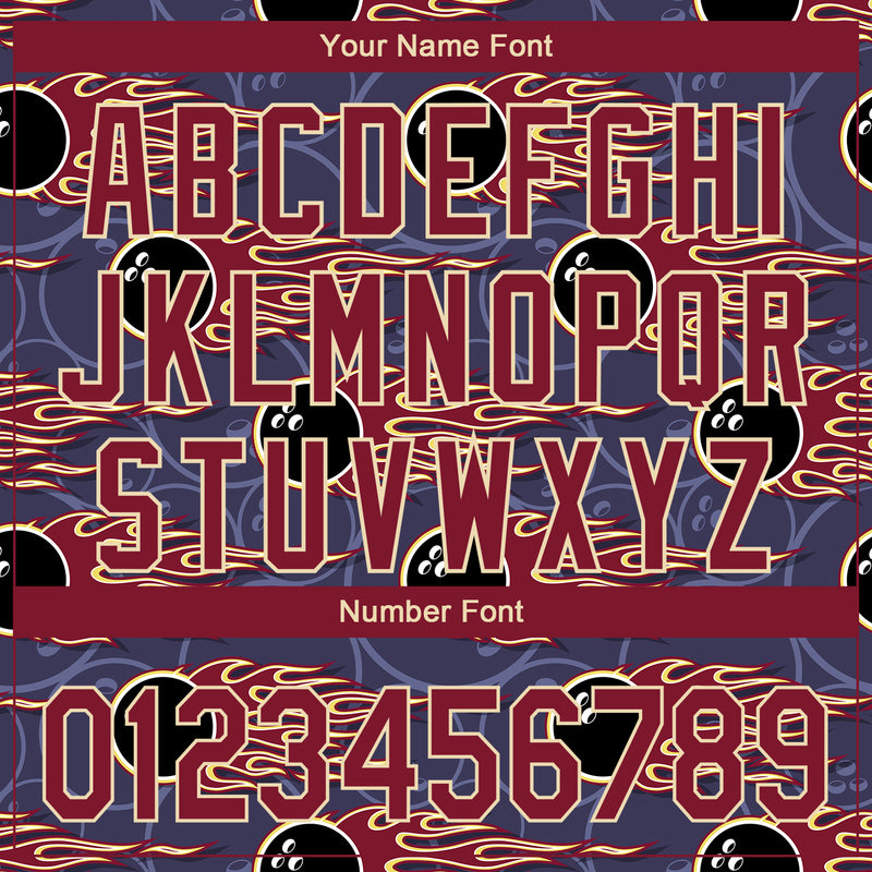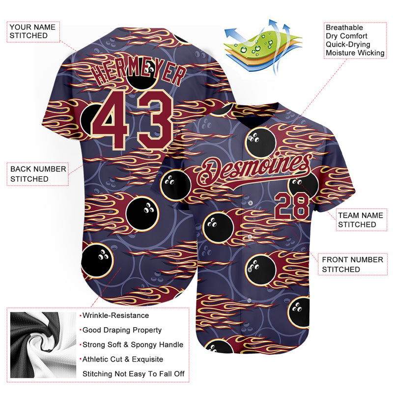Custom Purple Crimson-City Cream 3D Pattern Design Bowling Ball With Hotrod Flame Authentic Baseball Jersey