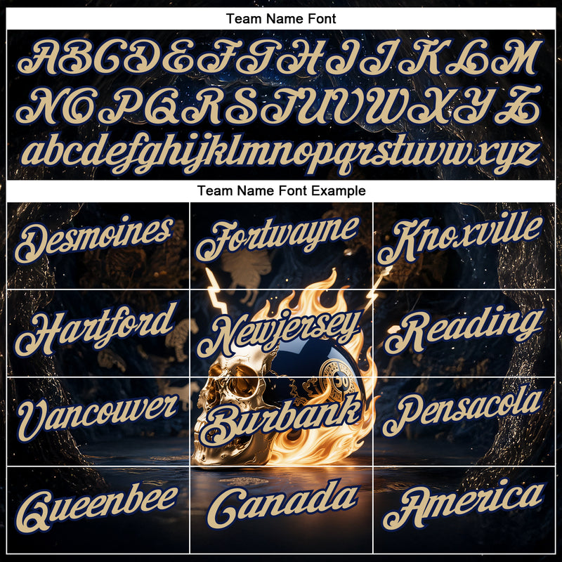 Custom Navy Vegas Gold 3D Flame Skull Bowling Performance Polo Shirt