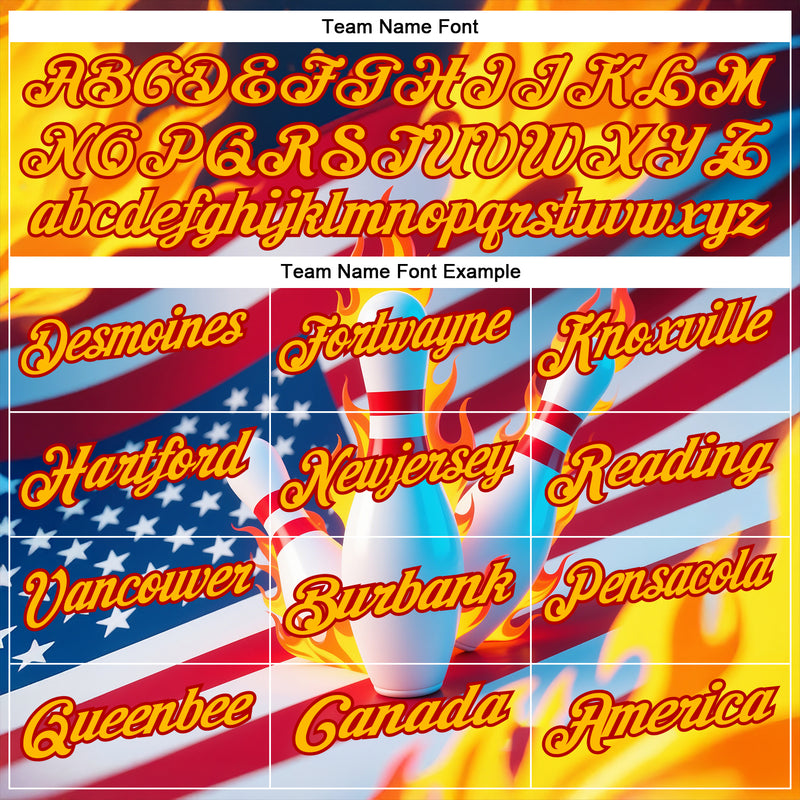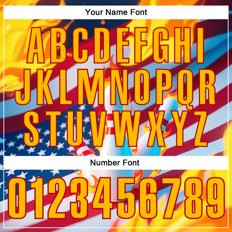 Custom Navy Gold-Red 3D American Flag Flame Bowling Performance Polo Shirt