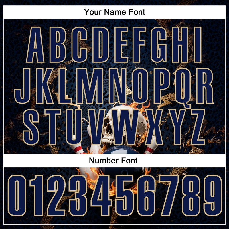 Custom Navy Vegas Gold 3D Flame Leopard Print Skull Bowling Performance Polo Shirt