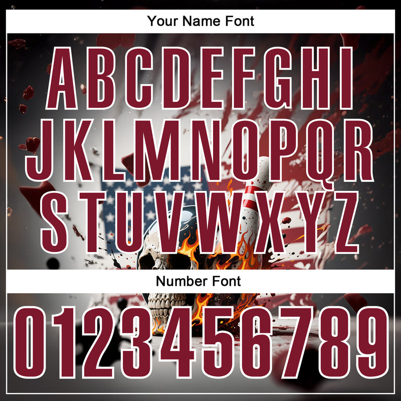 Custom Gray Crimson-White 3D American Flag Splash Flame Skull Bowling Performance Polo Shirt