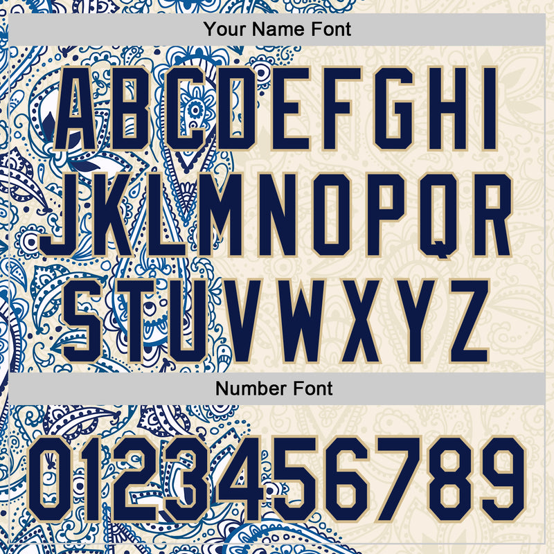 Custom Cream Navy Royal-Vegas Gold 3D Pattern Design Burner Costumes Paisley Authentic Baseball Jersey