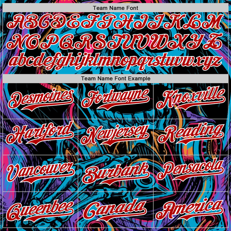 Custom Black Red-White 3D Pattern Design Burner Costumes Horror Skull Authentic Baseball Jersey