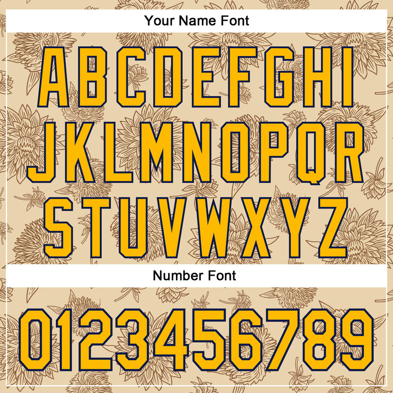 Custom Stitched City Cream Gold-Navy 3D Pattern Design Subtle Floral Sports Pullover Sweatshirt Hoodie