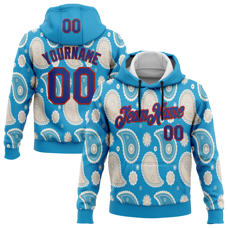 Custom Stitched Panther Blue US Navy Blue-Red 3D Pattern Design Ethnic Paisley Floral Bandana Sports Pullover Sweatshirt Hoodie